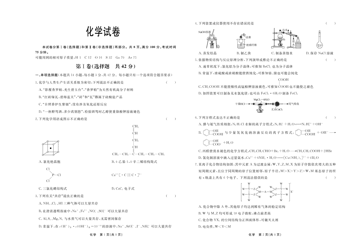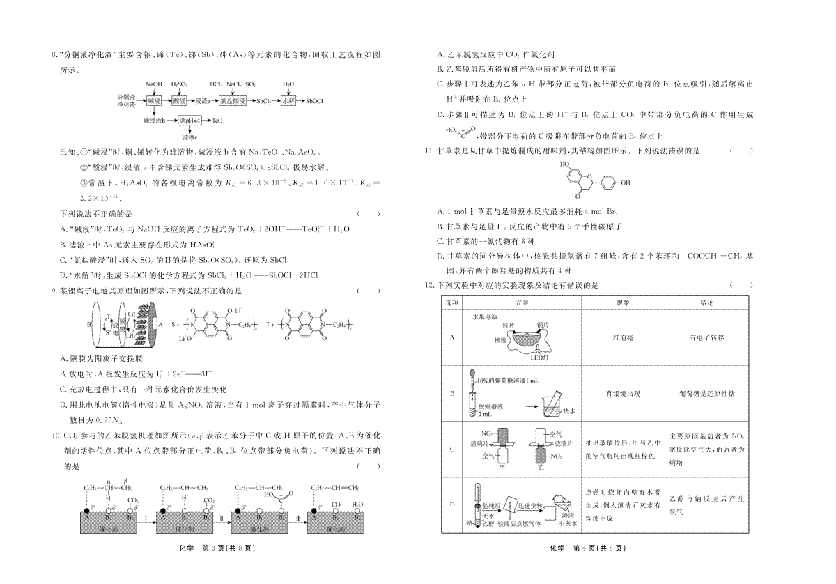 一、河北省部分高中2024届高三下学期一模试题 化学 PDF版含答案