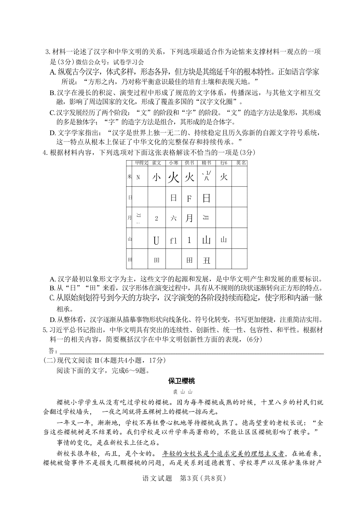 2024届陕西省榆林市高三下学期4月大联考语文试题