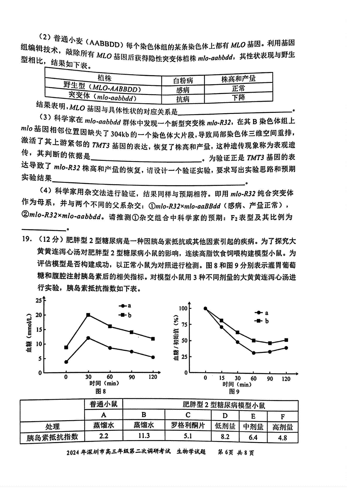 如果你想下载2024届广东省深圳二模生物试卷DOC或PDF版,请点击本文末链接!