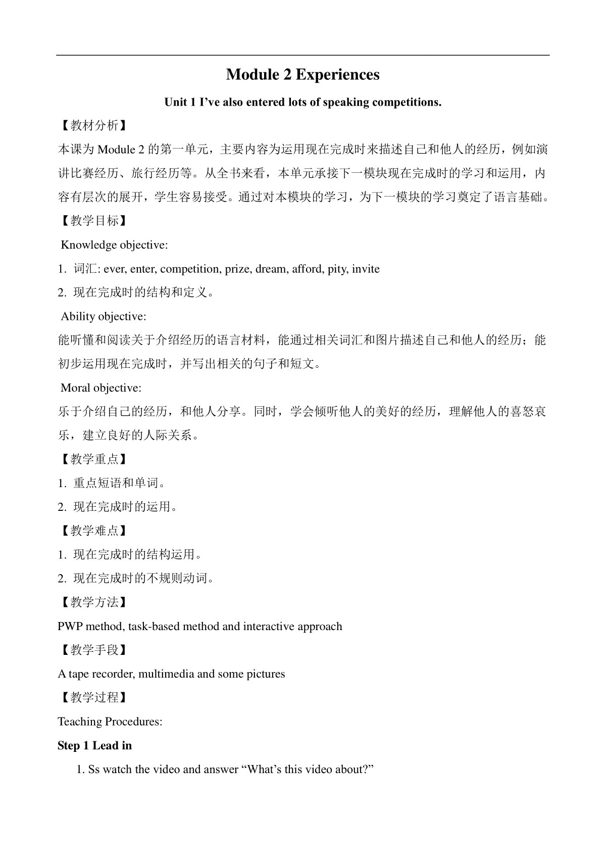 experience共34篇 Module 2 Experiences模块达标测试卷 答案Module 2 Experiences模块达标测试卷 答案于近期开考,本次考试对... Module 2 Experiences 教案Module 2 Experiences 教案于近期开考,本次考试对考生对知识的掌... 外研版八年级英语下册 Module 2 Experiences 试题外研版八年级英语下册 Module 2 Experiences 试题于近期开考,本... Module 2 Experiences 教案Module 2 Experiences 教案于近期开考,本次考试对考生对知识的掌... Module 2Experiences Unit2& Unit 3... 上一页 下一页